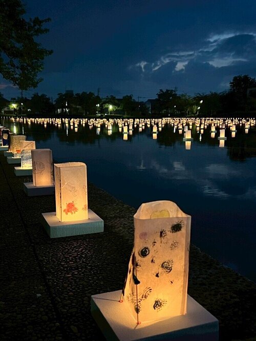 「第10回おほり灯ろうまつり」 お掘の水面に灯りの花が咲きました