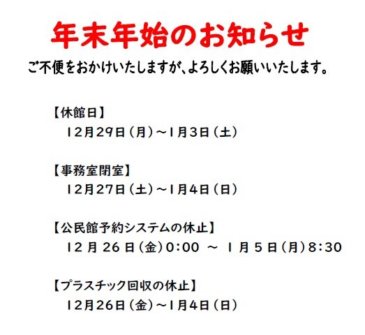 年末年始のお知らせ