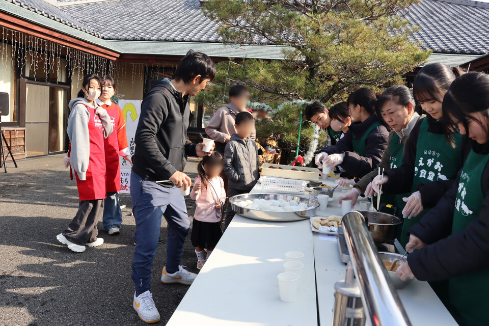 12/14(日)に、赤松まちづくり協議会主催の「えがお食堂もちつき会」を開催しました。もちつきの体験は、多くの子どもたちが「よいしょよいしょ」の掛け声とともに杵と臼で一生懸命、頑張って餅をついていました。