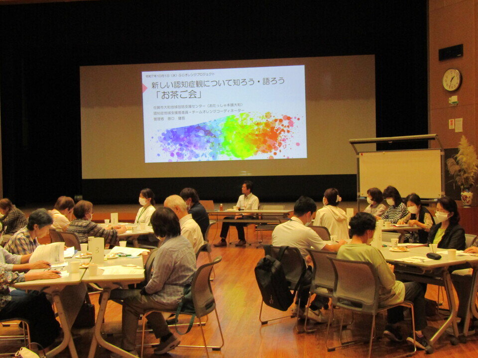 タイトルは「新しい認知症観について知ろう、語ろう〜お茶ご会」