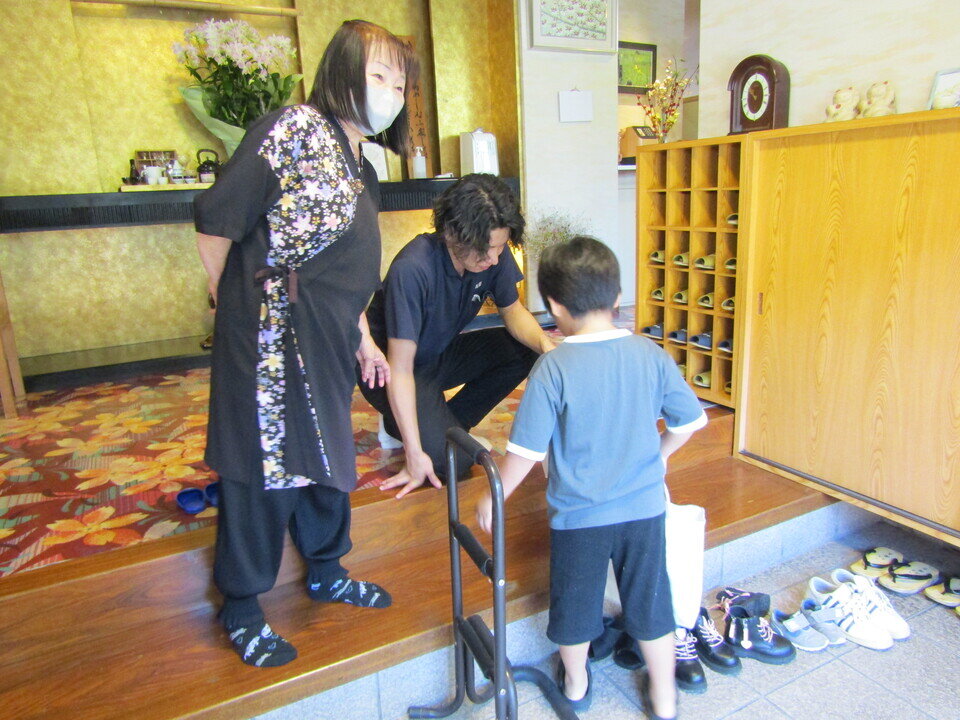 古湯の旅館街では温泉の女将さんやお店のご主人など多くの地域のみなさんが待っていてくれました。
