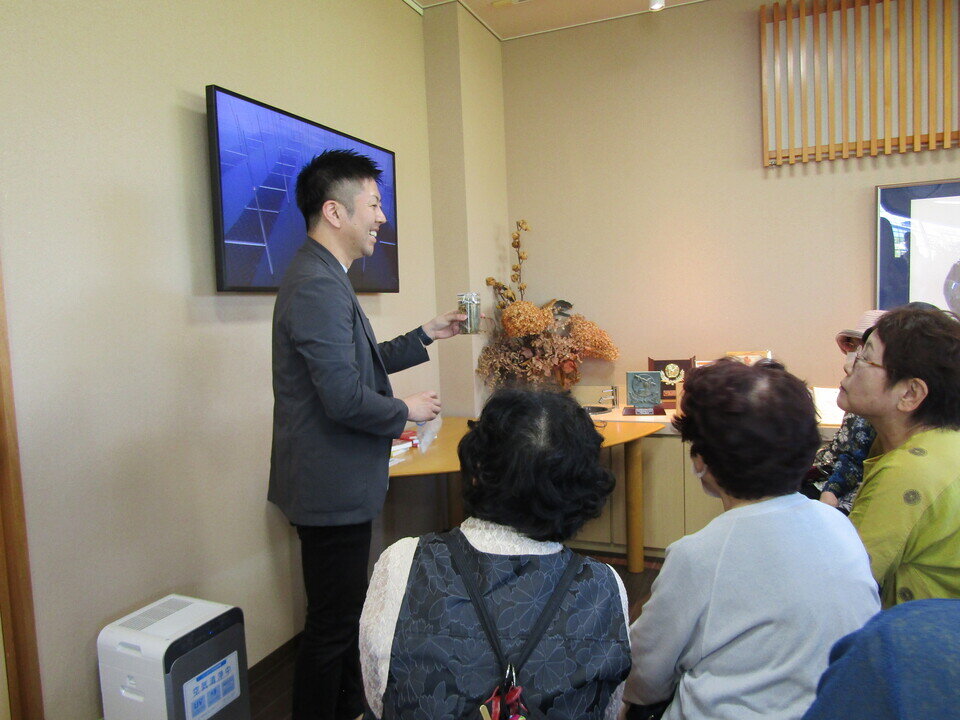 三福海苔の川原専務に美味しい海苔ができるまでの工程をご説明いただきました