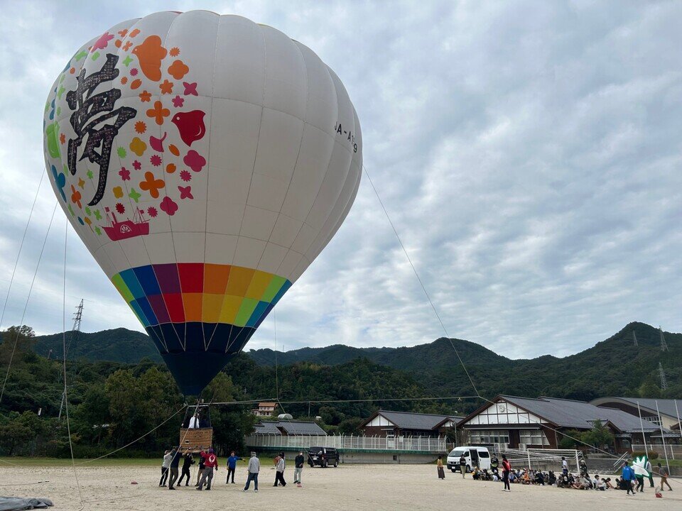 10月21日火曜日8時30分ごろから、富士小学校グラウンドでバルーン係留がありました。
