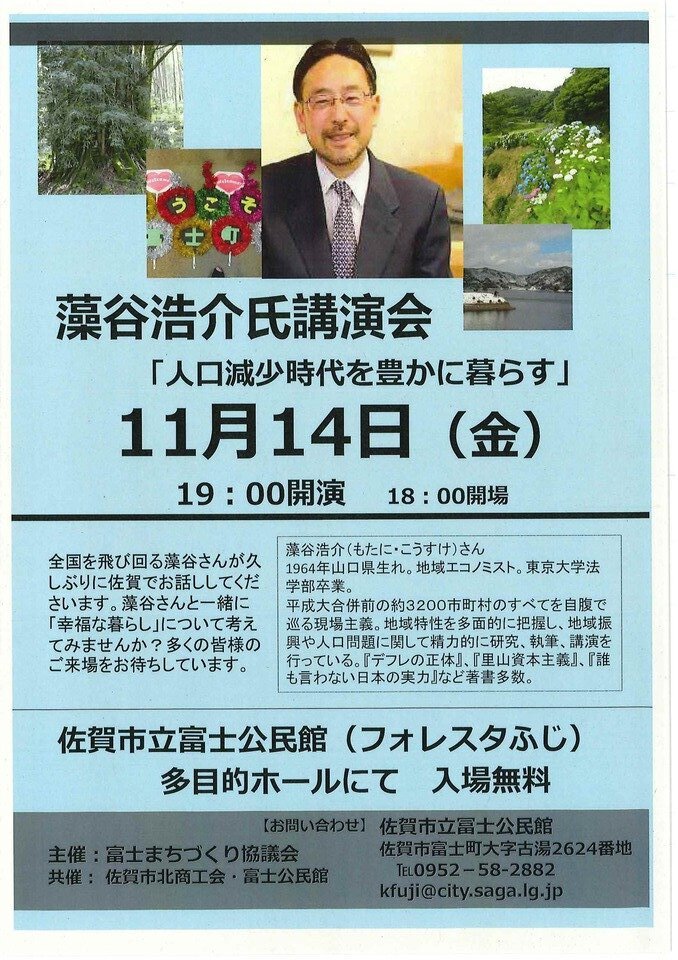 富士町のフォレスタふじで、藻谷浩介さんとともに「幸福な暮らし」について考えてみませんか?