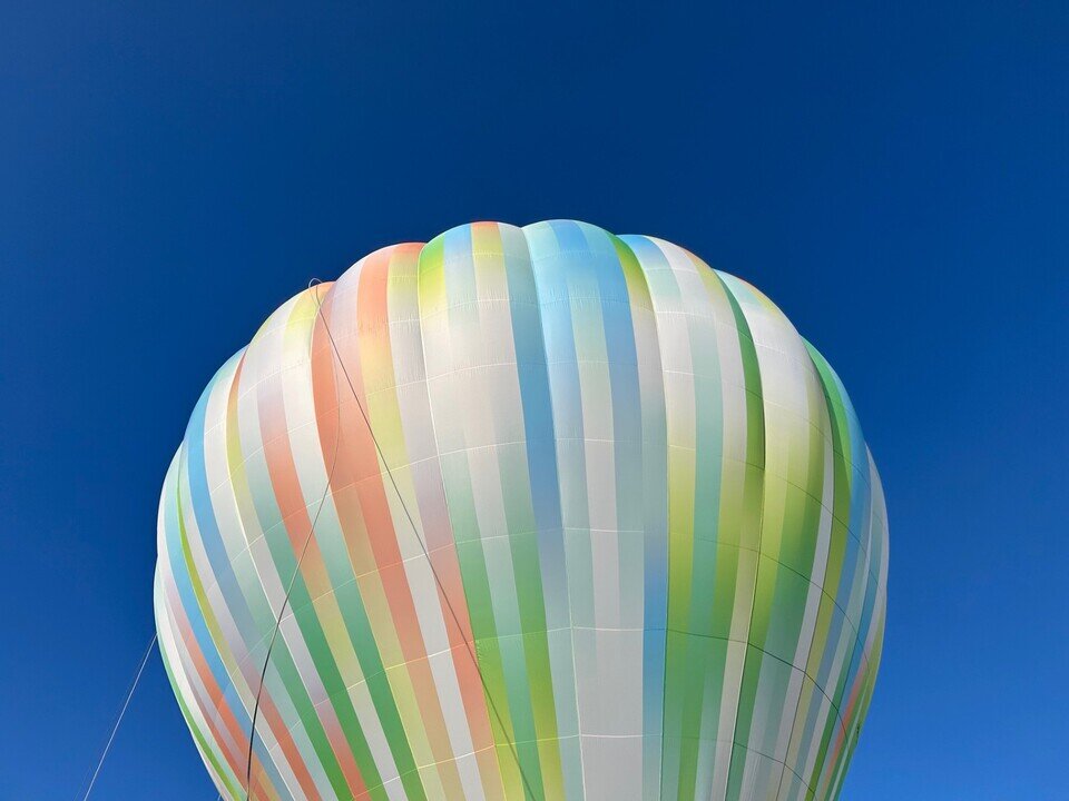 ここで一番注目してもらいたいのは、ロープの張り。バルーンニストさんたちが係留体験安全のため朝早くから調整してくれています。
