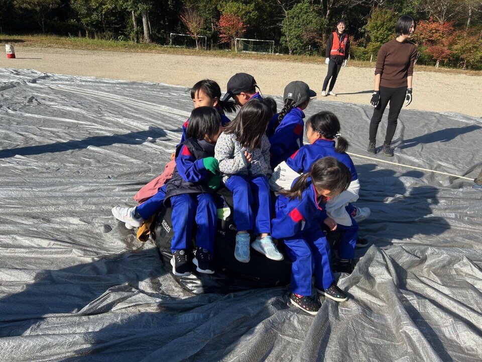 みんなで片付けの手伝い!バルーンを収納袋に入れてから空気を抜く作業です。楽しそうでした(^^)