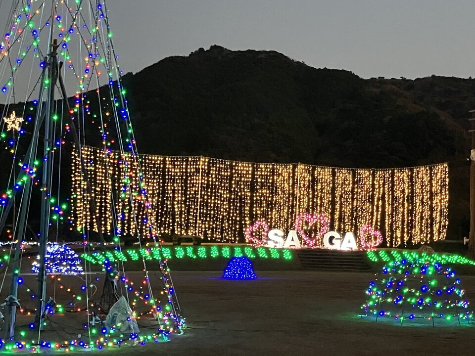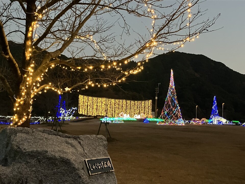 嘉瀬川ダムのしゃくなげ広場で、ライトアップが始まりました。
