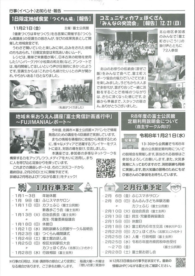 富士公民館だより(令和8年1月号)を発行しましたので、どうぞご覧ください。