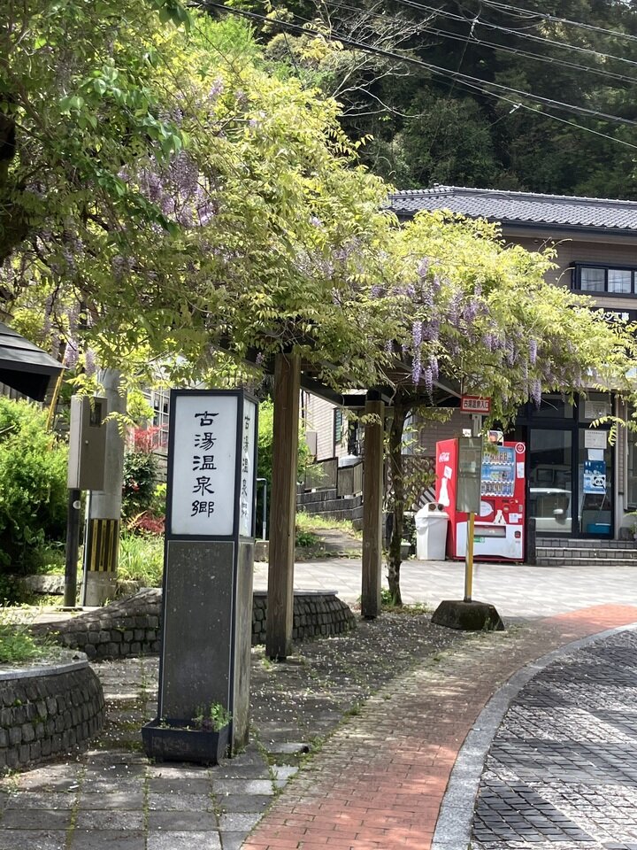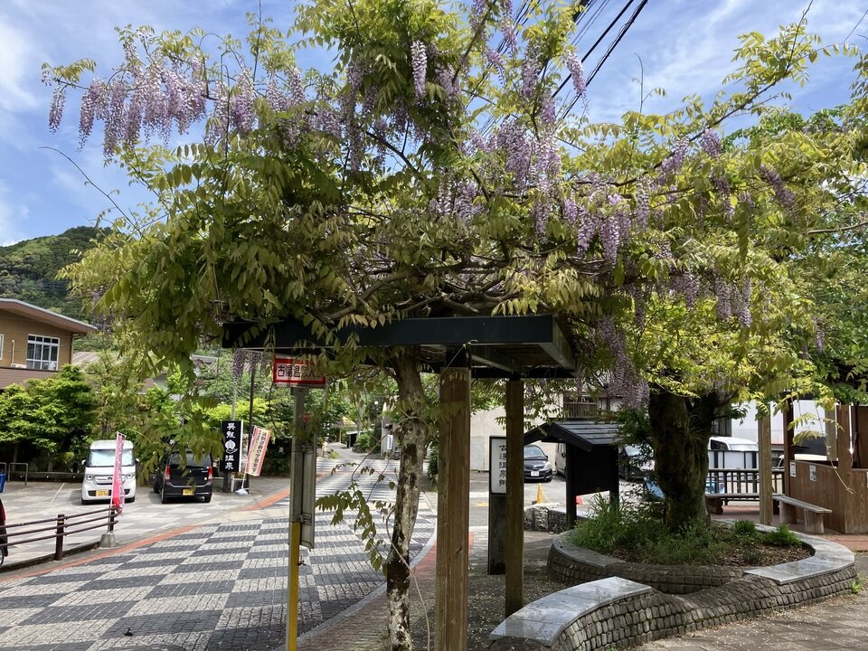 古湯温泉の英龍温泉前のフジ棚も満開です。