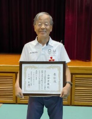 永年ソフトテニスをを愛好し、中学生を指導、また佐賀市ソフトテニス協会の会長、副会長として18年にわたりソフトテニスの普及、発展、および青少年の健全育成に貢献されました。 受賞おめでとうございます。