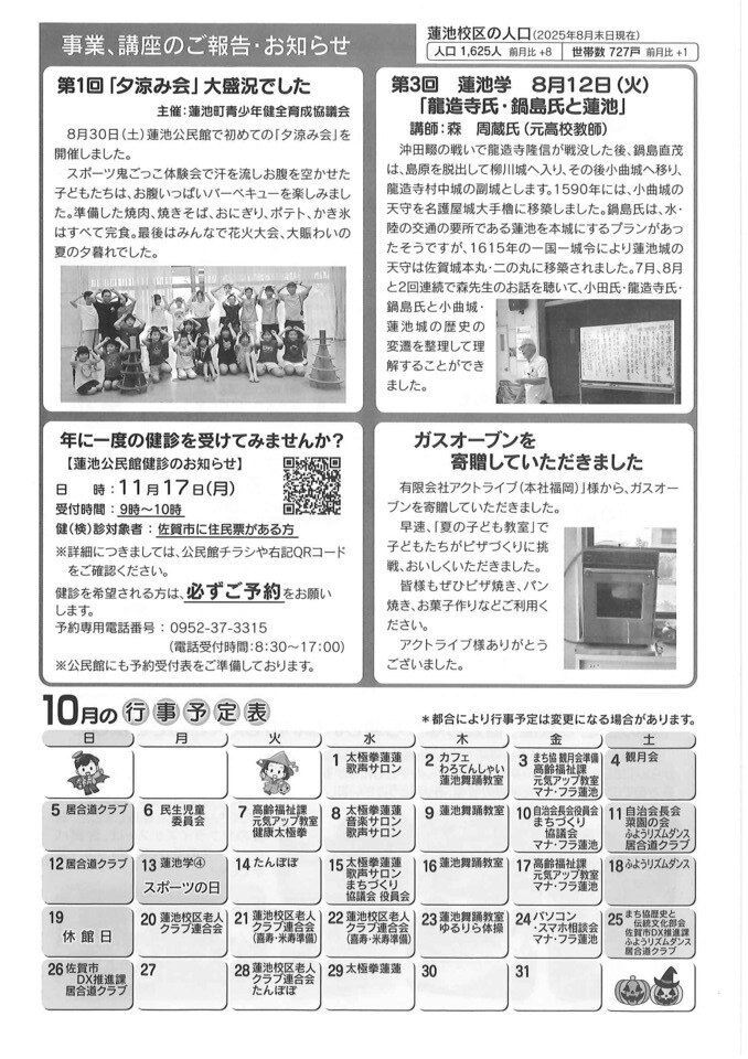 蓮池公民館だより「はすのいけ 2025年9月号」を発行しました。