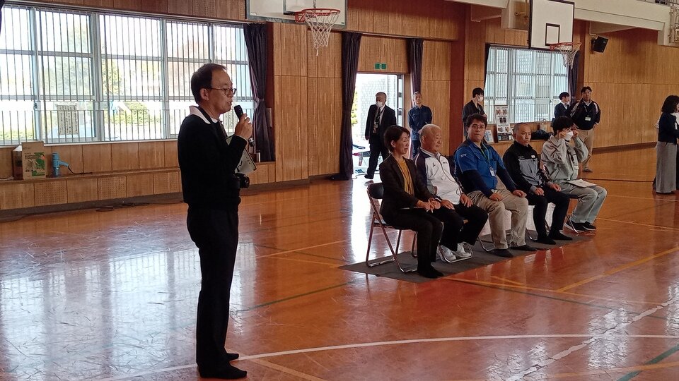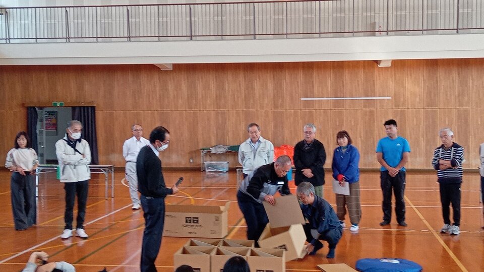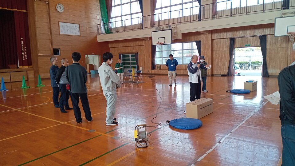 令和7年11月17日(月)14時より小中一貫校芙蓉校体育館にて、児童・生徒・地域役員を4班に分け班ごとに整列し避難所開設訓練の説明がありました。