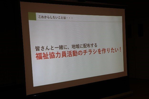■ 今年の研修会では『地域における見守り活動の必要性!!』について、その意義を再確認し、地域住民の皆様に福祉協力員の制度を更に知って頂くための「チラシ」及び緊急時に活用する「安心カード」作成に向けて参加者の皆様から貴重な意見をいただきました。