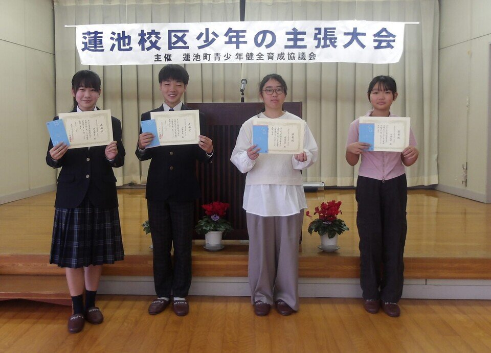11月9日(日)に令和7年度「蓮池校区少年の主張大会」が蓮池公民館大会議室で開催され、芙蓉校の4名の子どもたちが日頃考えていることや将来の夢、願い、訴えたいことなどを発表してくれました。
