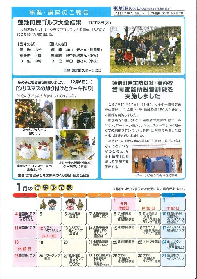 蓮池公民館だより「はすのいけ 2026年1月号」を発行しました。