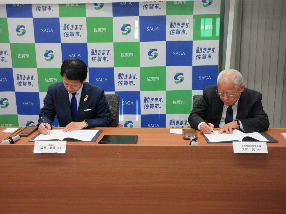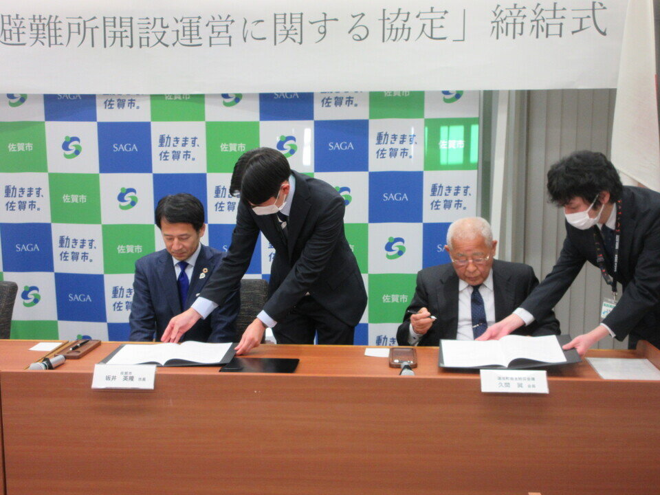 1月22日(木)に、蓮池町自主防災会議は、災害時における指定避難所の円滑な運営を目的とし、佐賀市と『協働による指定避難所開設運営に関する協定』を締結しました。