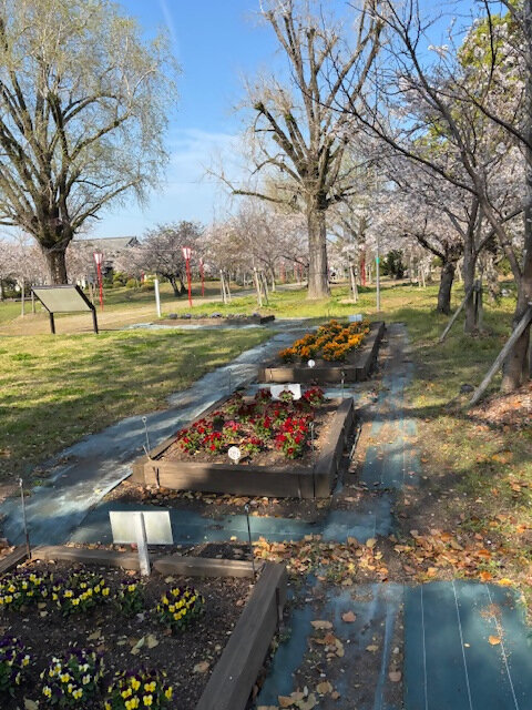 蓮池公園の桜がとてもきれいに咲いています。公園内には桜ばかりでなくパンジーやビオラ、芝桜なども、見頃となっています。また、東屋では蓮池町伝統の正月飾りである鼓の胴に飾り付けをした、「鼓の胴の花飾り」が飾り付けてあります。今週末は、蓮池公園へお出かけしませんか?