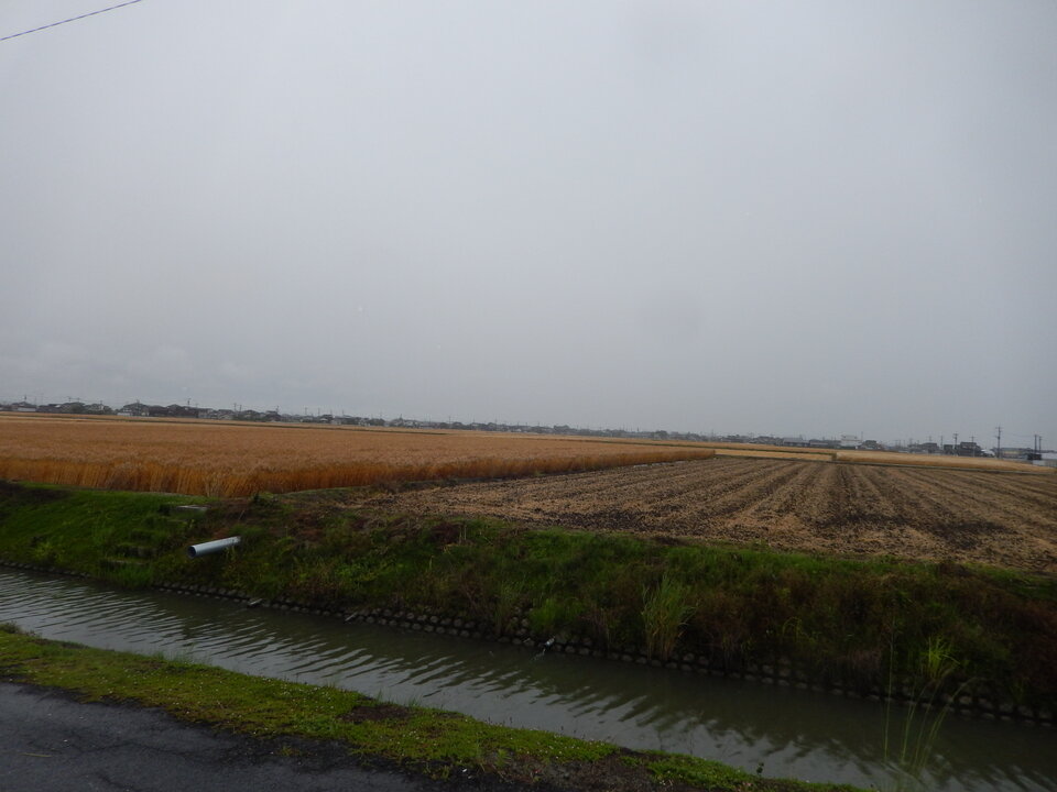 そこからまた進路を東にとり、農道を通って上町へ。道を挟んで左右には一部収穫されていたところもありましたが、黄金に輝く麦畑が広がっていました。