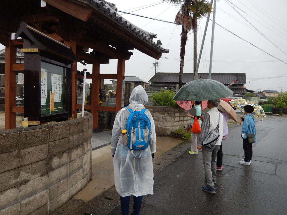 今回は雨天で非常に残念でしたが、参加者からは「普段通り慣れた道でもよく知らないことや色んな発見ができた」などの感想が聞かれました。次回はぜひ快晴の中、またのんびりと楽しく地元を散策してリベンジしたいと思います!