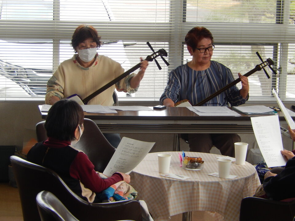 前回サプライズ的にご披露いただき大変好評だった、写真プロジェクト参加者の三味線演奏ですが、今回は助っ人を連れ立って来場され、数曲の三味線演奏と佐賀の箪笥長持唄などの民謡を披露していただきました。