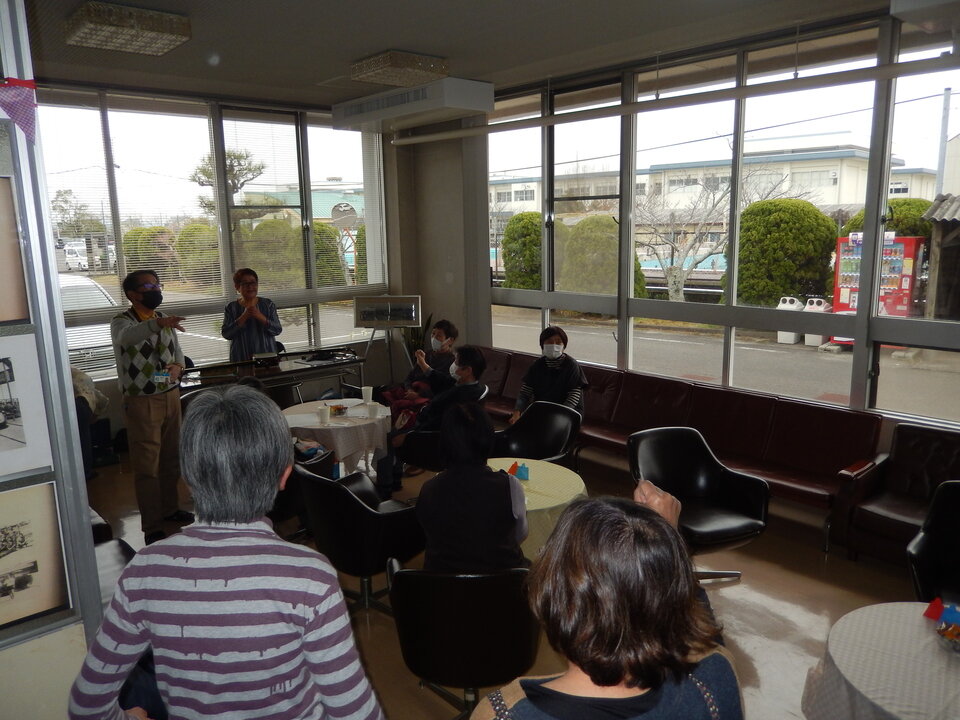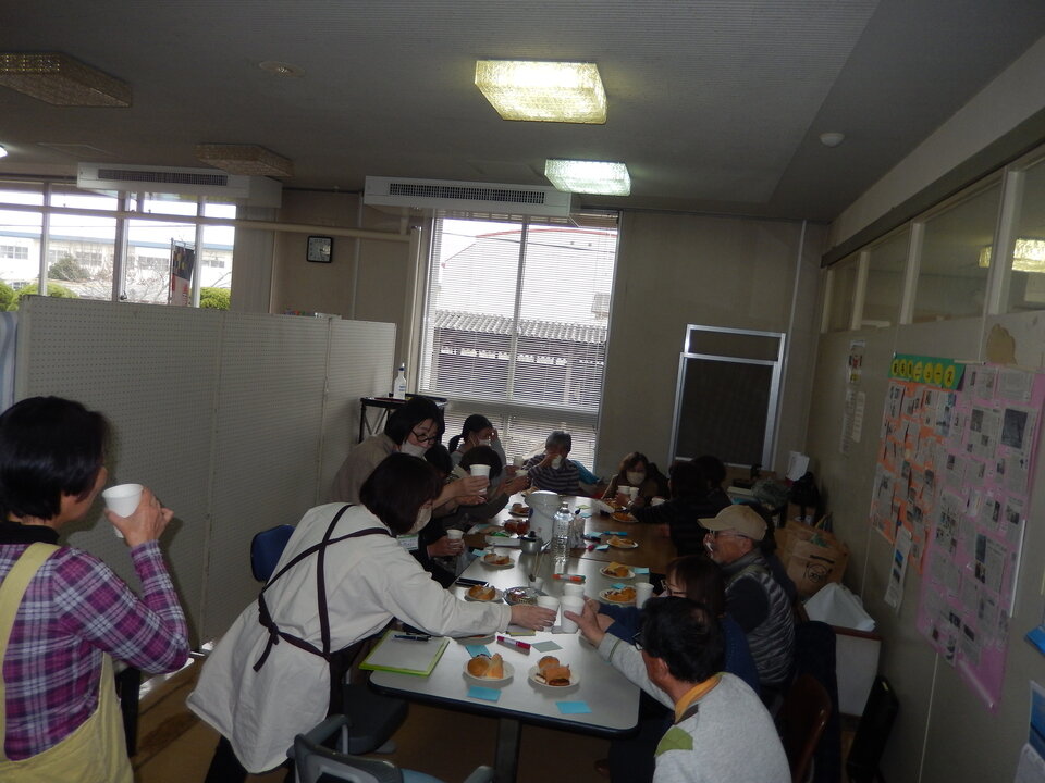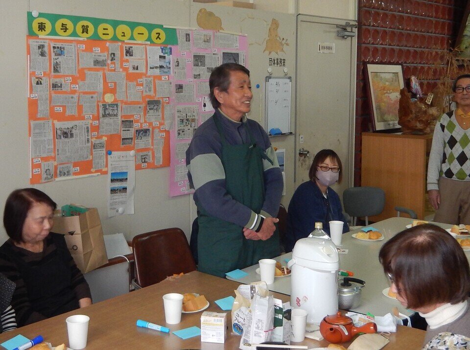 東与賀まちづくり協議会人のつながり部会の竹下部会長、東与賀公民館の野中館長にひとこと挨拶していただき、お茶で乾杯しました。