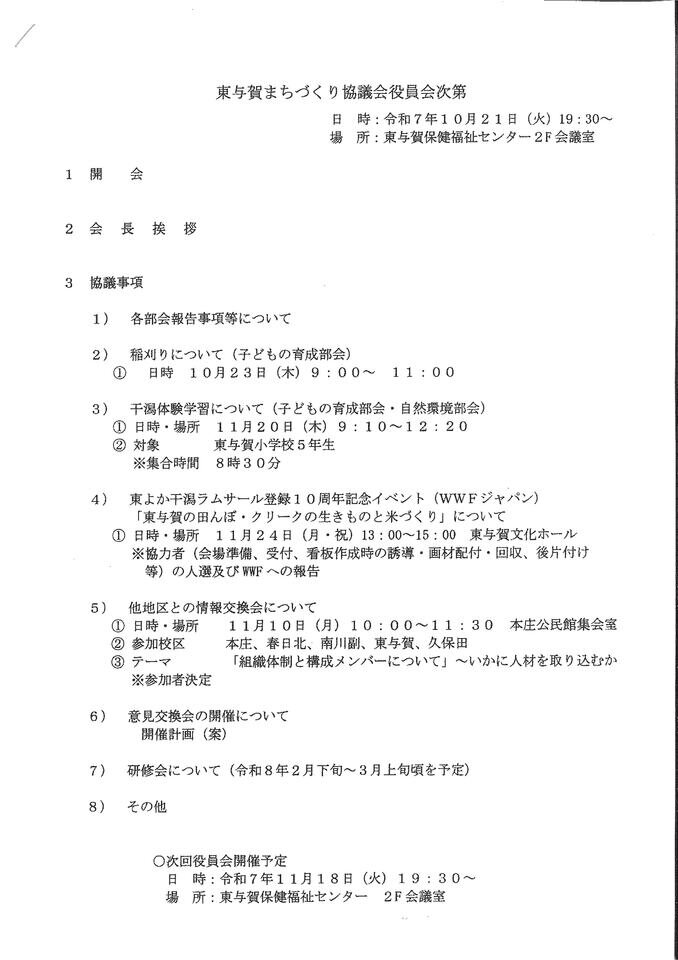 東与賀まちづくり協議会役員会(R7.10月)