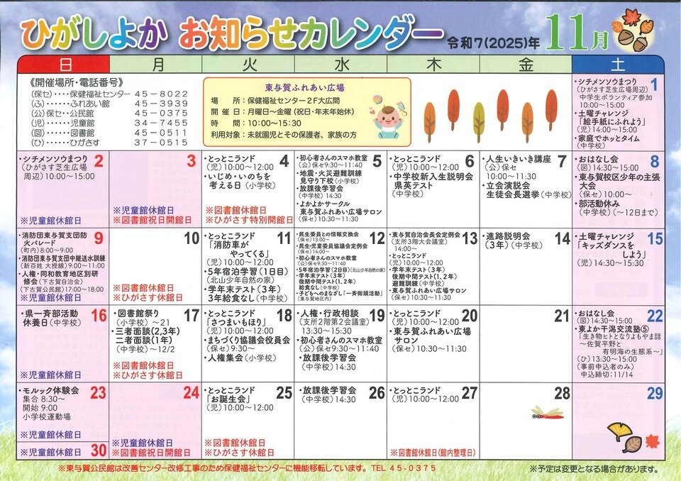 ※お知らせカレンダーは予定です。都合により変更となる場合もありますので、詳しくは開催場所にお問い合わせください。