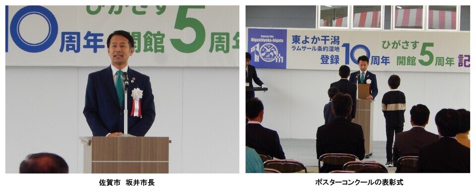 東よか干潟がラムサール条約湿地に登録されて今年で10周年、また東よか干潟ビジターセンターひがさすが開館して今年で5周年の節目を記念して、ひがさすで記念式典が開催されました。