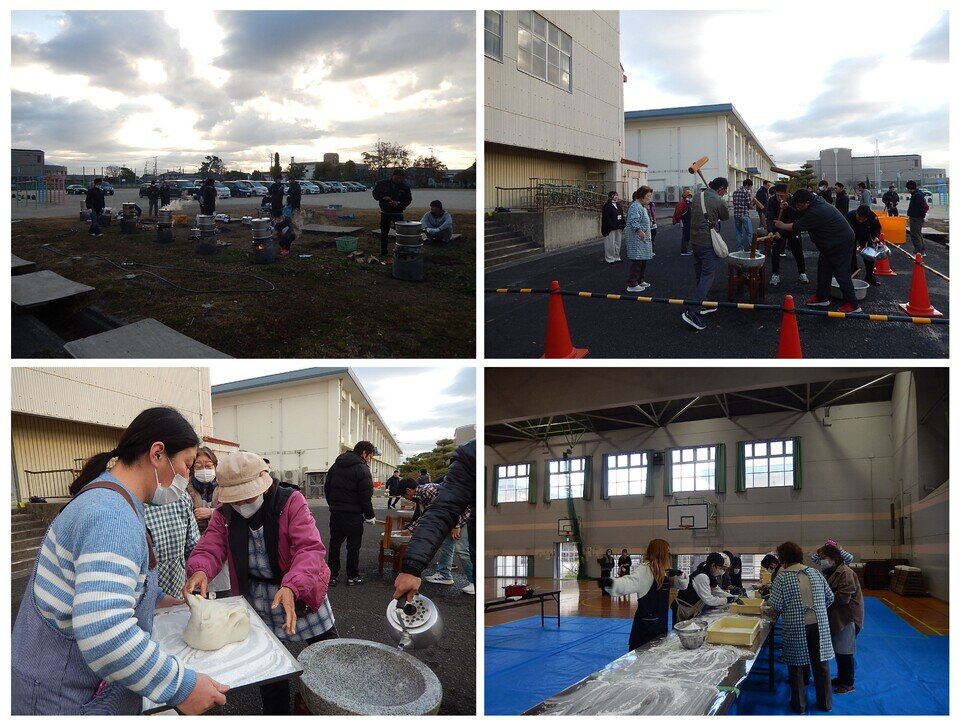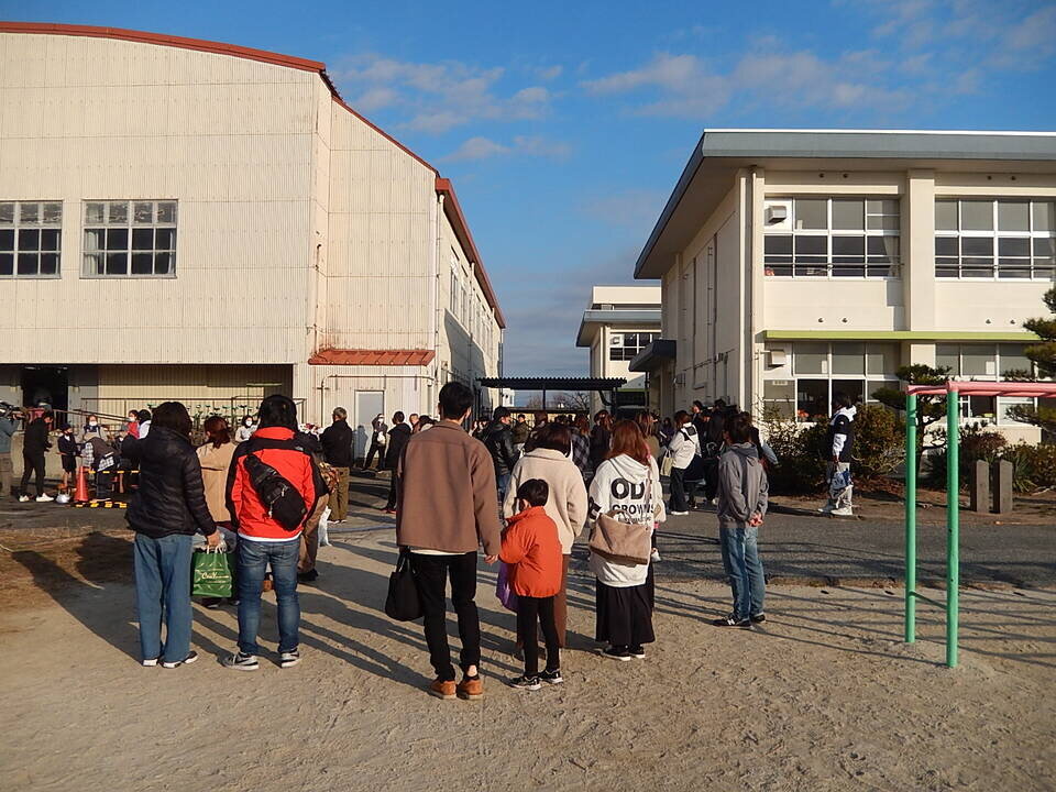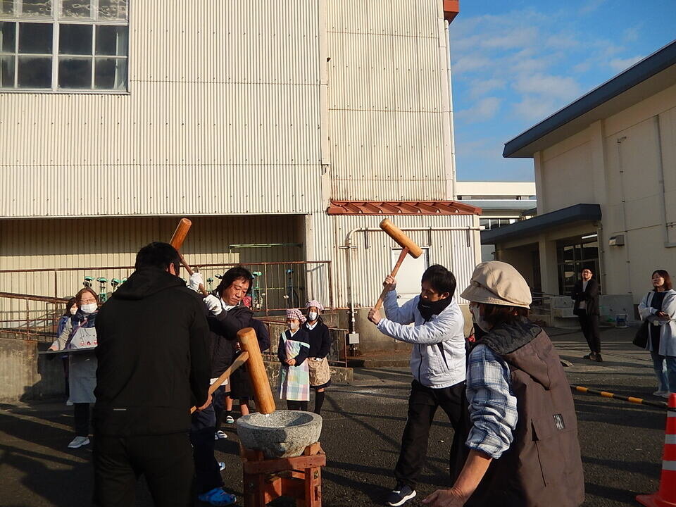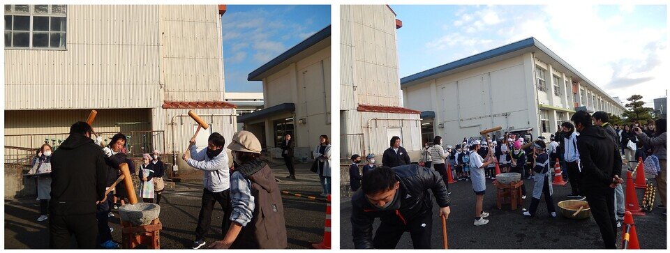 12月7日(日)に東与賀小学校で行われ、東与賀小学校PTAが主催し地域のみなさんのご協力の下、東与賀小学校の児童たちが餅つきに挑戦しました。