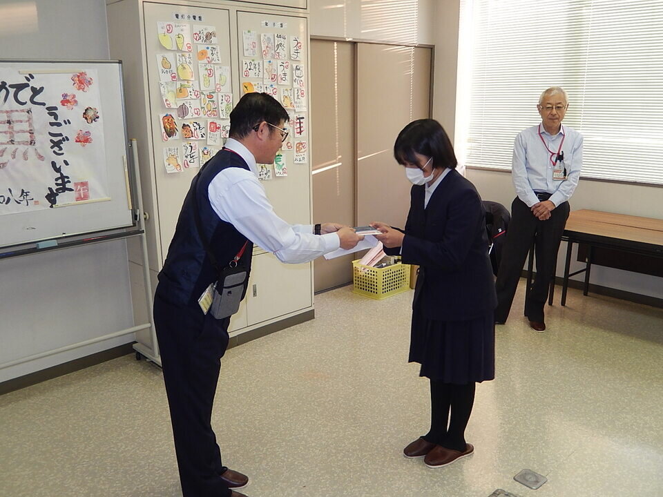 また、低学年の頃から毎年参加してくれている児童(現在6年生で今年が最後の参加)に、講師より記念の特製消しゴムネームスタンプが贈られました。