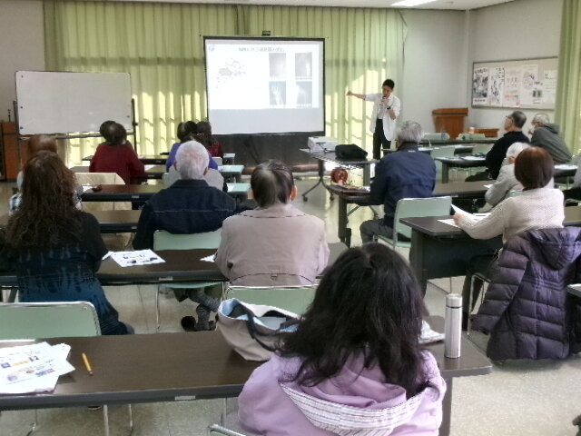 膝関節や股関節のしくみや痛みが起きる原因、対処法、日常生活で気を付けたい動作や無理なく取り組める運動など専門的な内容を、実に丁寧にお話しされました。参加者からは内容がわかりやすく、今後の生活に役立てたいとの声が複数寄せられ、次回は「糖尿病教室もお願いしたい。」等健康意識の向上につながる有意義な講座となりました。