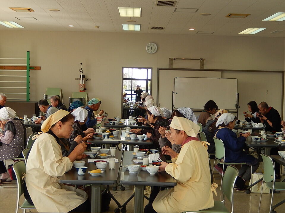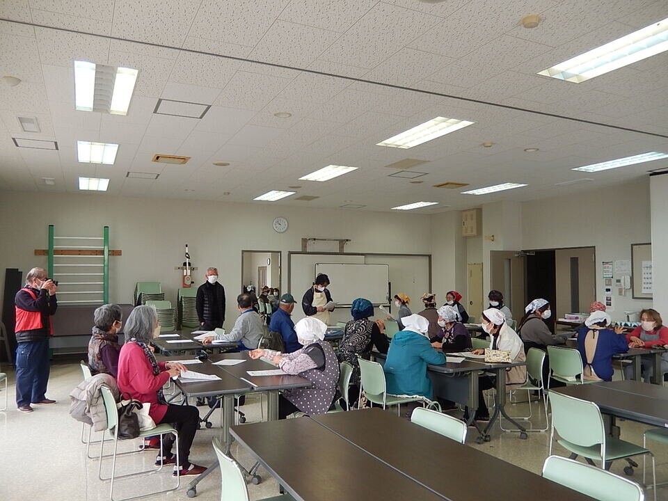 調理実習室では、東与賀食改協のみなさんにご指導を仰ぎながら、参加者全員で協力して調理されていました。