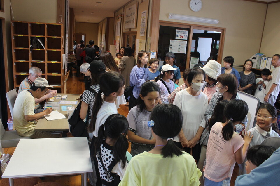 1 受付風景(開店前から行列ができていました。開店早々から混雑しています。)