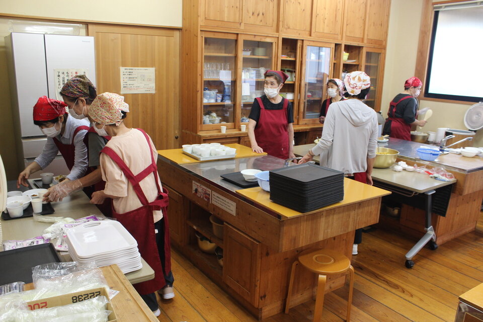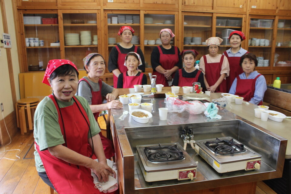 5 厨房スタッフ(いつも有難うございます。お疲れさまでした。向かって左端が江口富美子代表です。)