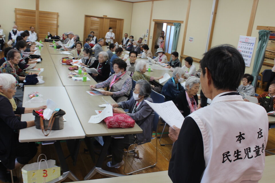 集いには、本庄こども園の園児と本庄小学校の児童(ビデオレター)が参加してくれ、歌やゲームで楽しんだりして、笑顔あふれるほっこりタイムとなりました。ご協力いただいた本庄こども園の皆様、本庄小学校の皆様、食生活改善推進協議会の皆様、おたっしゃ本舗城西の皆様、有難うございました。