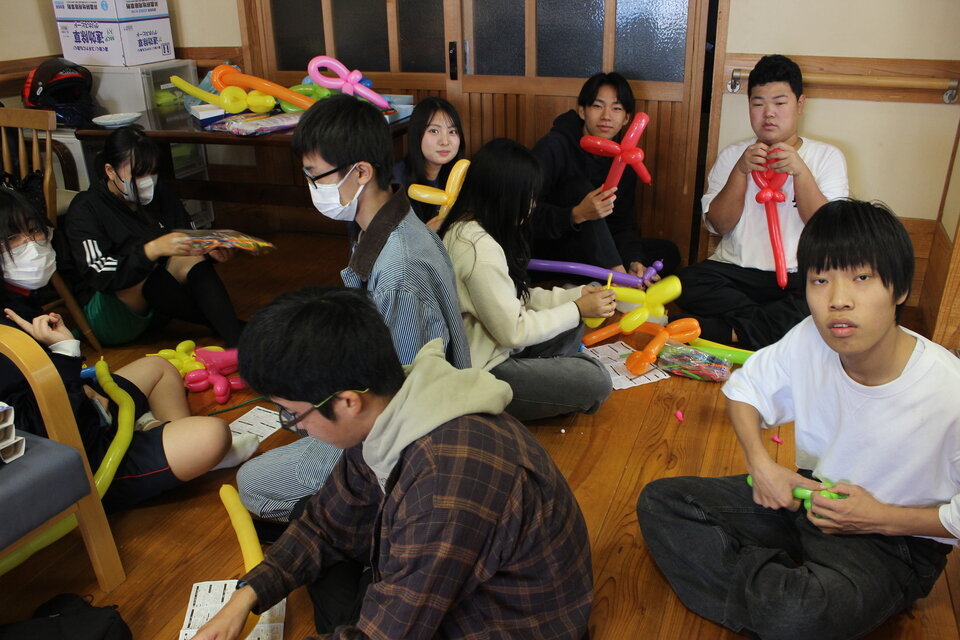 5 バルーンアート(佐賀東高等学校の学生さんがバルーンの準備しているところ&子どもたちと楽しんでいるところです。子ども達が大喜びでした。有難うございました。)![]()