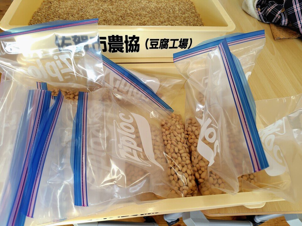 前日から水に浸けておいた大豆を茹で、柔らかくなった大豆をジップロックに入れて、一袋ずつ子どもたちはつぶしていきます。