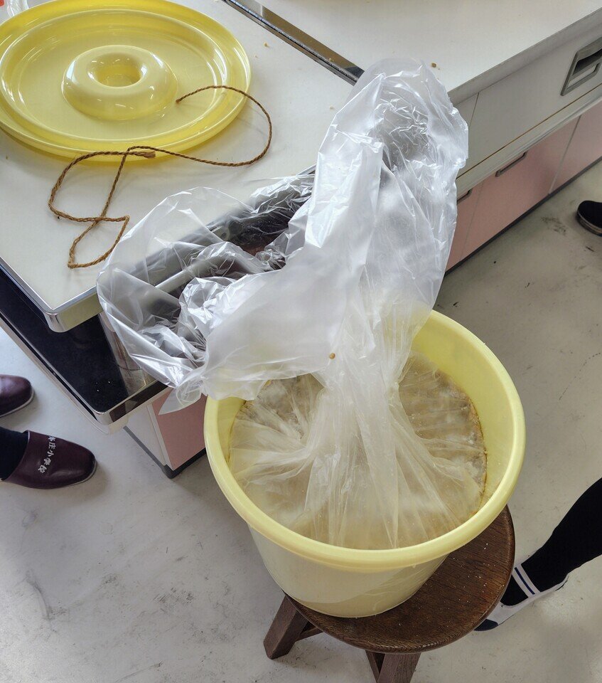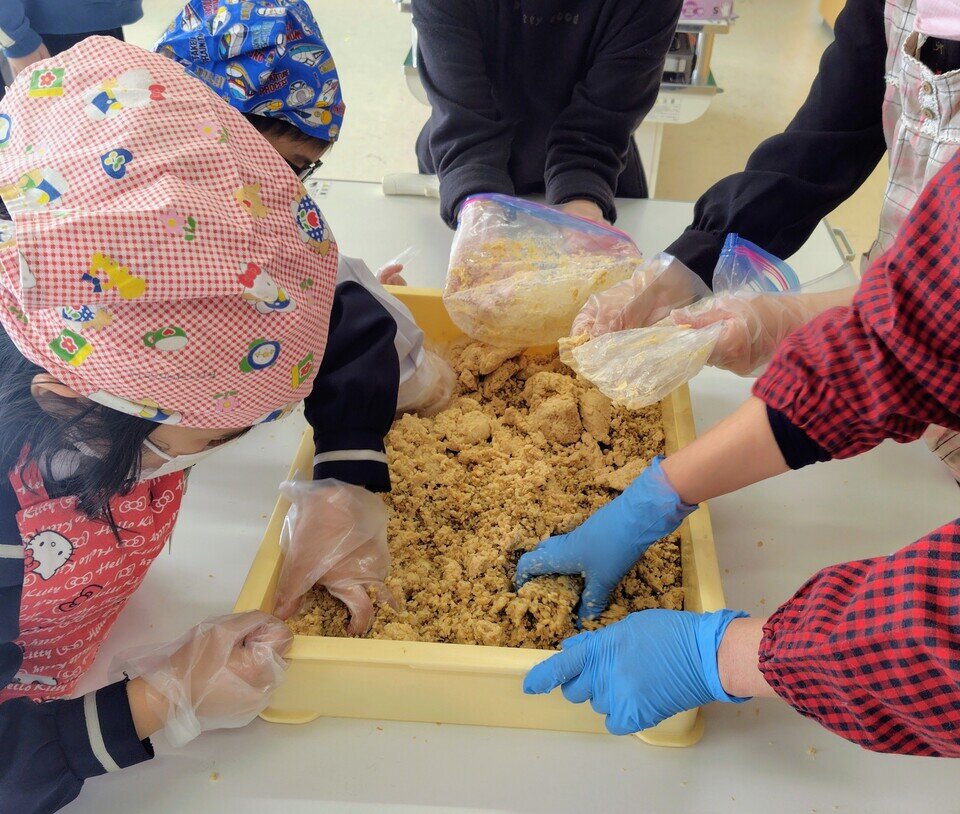 冬休みを前に、特別支援学級の子どもたちと「味噌づくり」をしました。