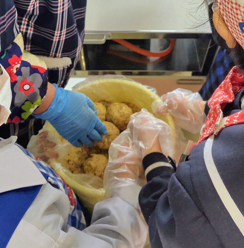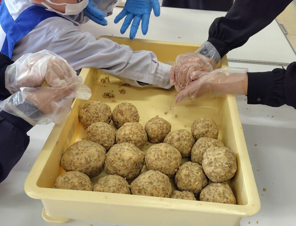 子どもたちは、丸くボール型に丸めていくのがとても上手でした。