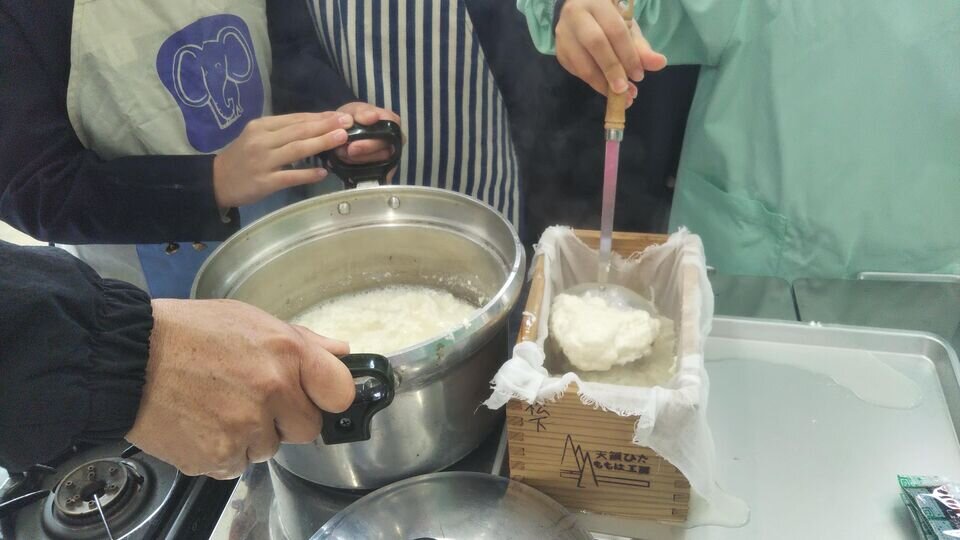 乾燥させた大豆を使って豆腐作りにも挑戦しました。