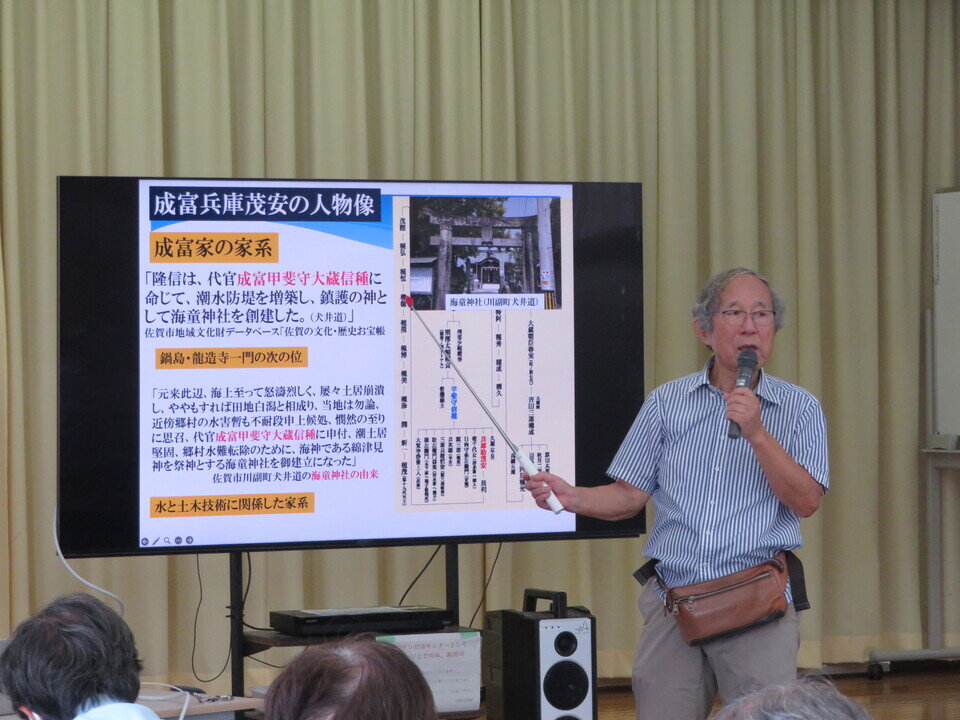 令和7年10月15日(水)、さが水ものがたり館館長の荒牧軍治さんを招いて、巨勢川や成富兵庫茂安についての講演を開催しました。