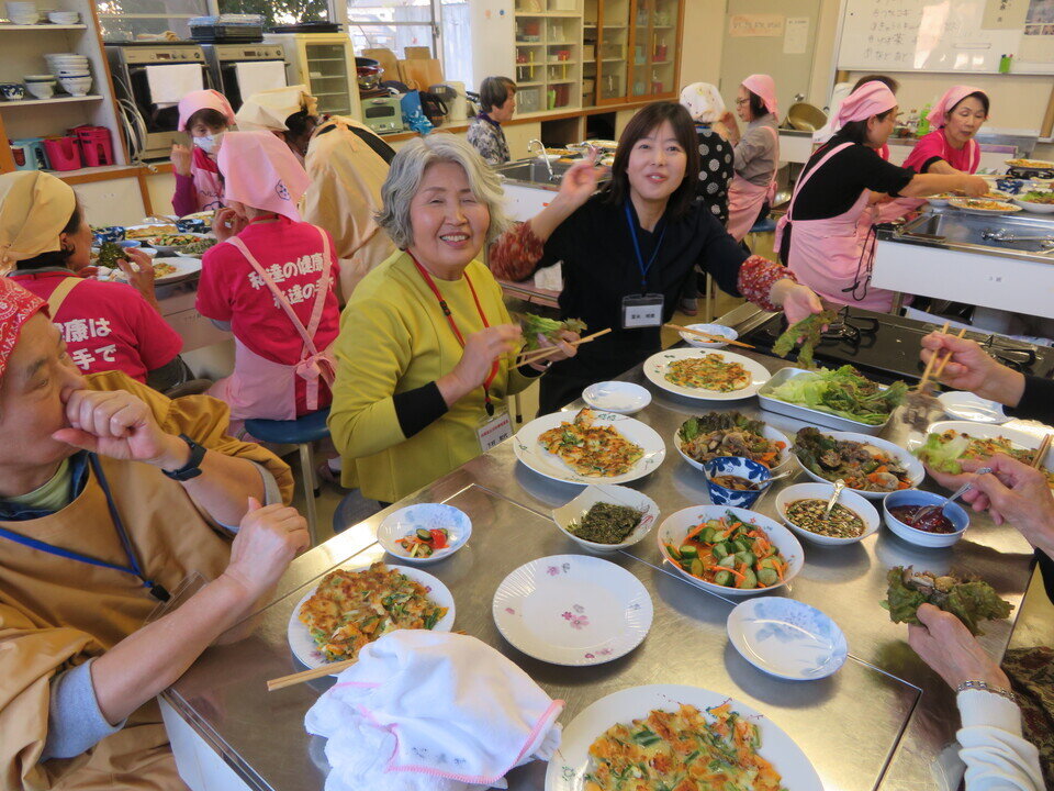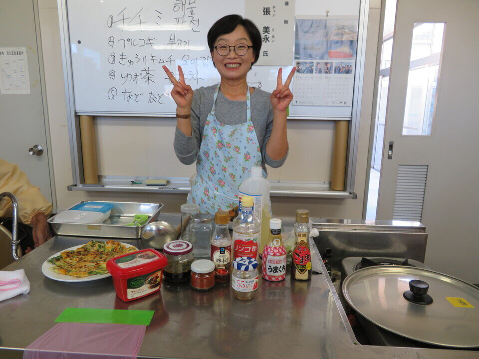 当日は韓国料理でよく知られているちぢみやプルコギやタレなどの作り方を教わりながら、韓国の日常の食生活や食材などを楽しくわかりやすく学び、あっという間に時間が過ぎていきました。