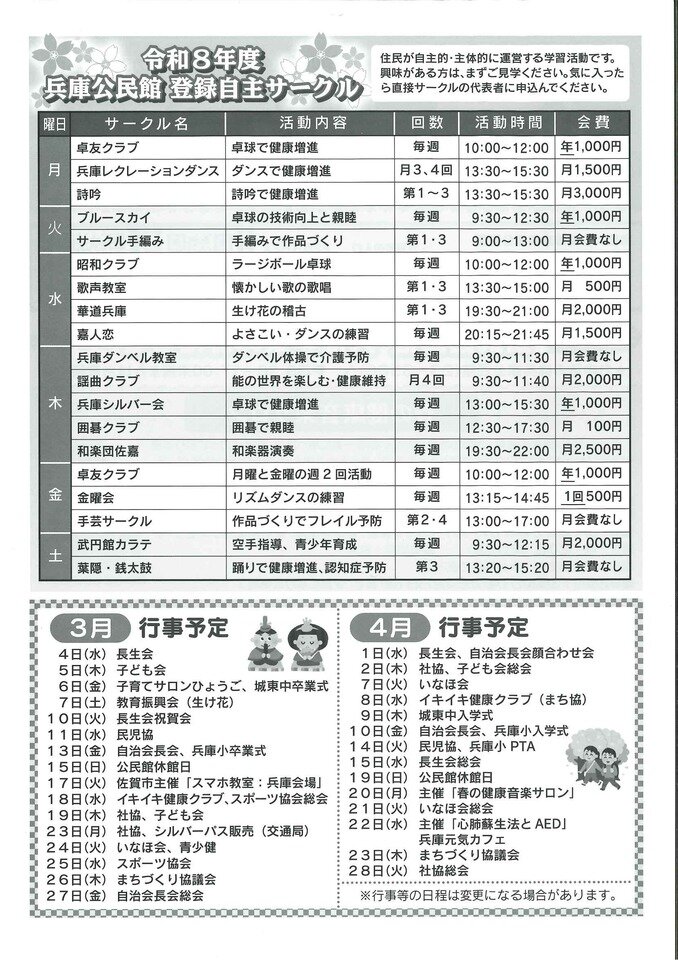 ・令和8年度兵庫公民館登録自主サークル