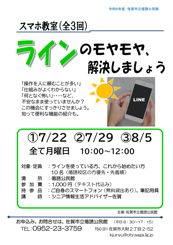 - 対象 LINEを使っている方、これから始めたい方 先着10名(循誘校区の方優先)