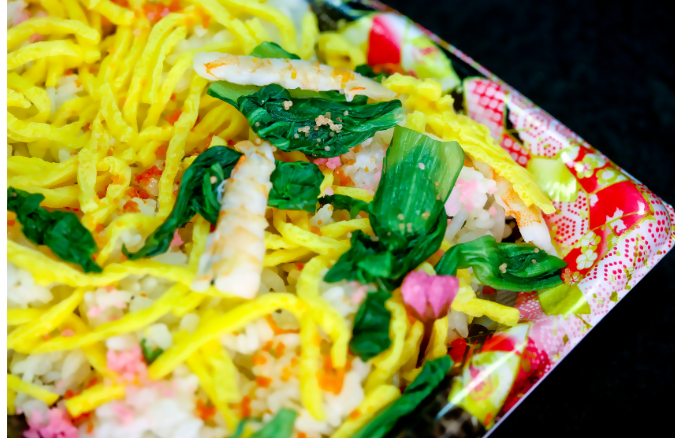 男性料理クラブの名物ちらし寿司(お吸い物付き350円)。売切れごめん