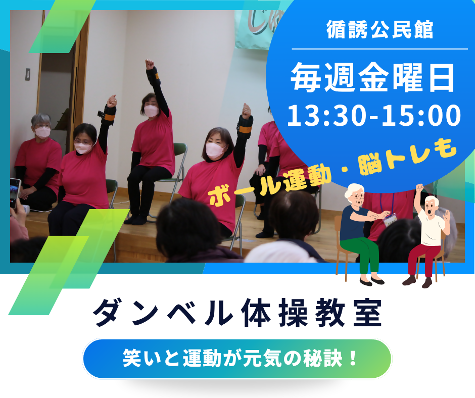 ダンベルだけでなく、ボール運動や脳トレなど、飽きずに楽しく続けられるメニューをご用意しています。