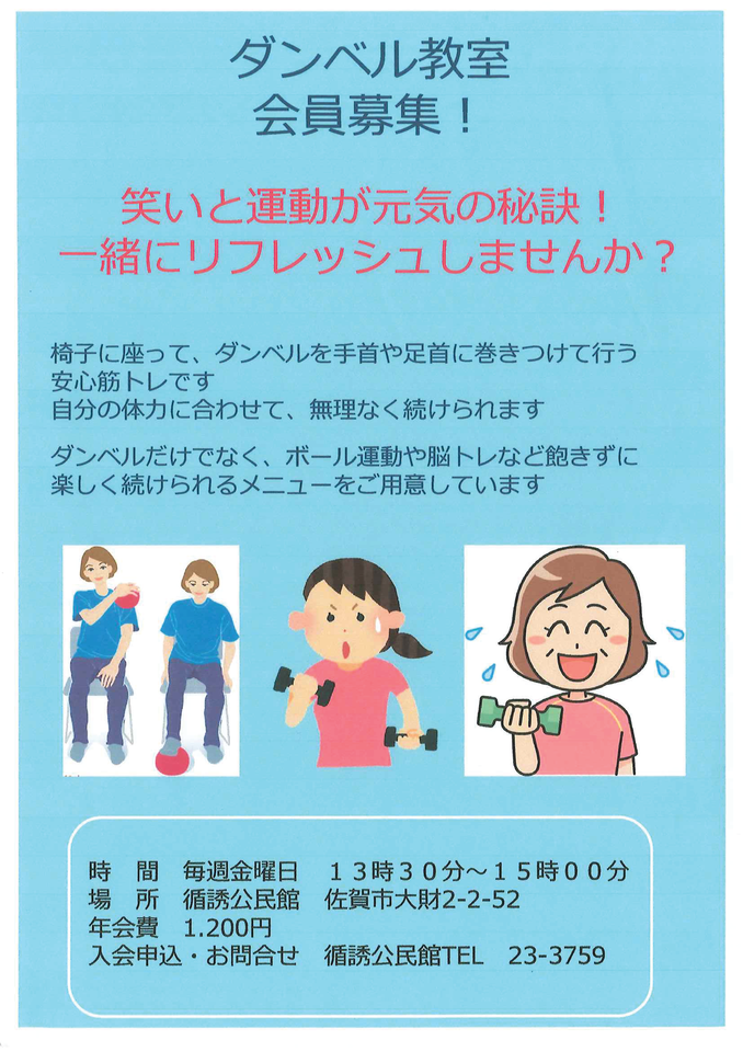 椅子に座って、ダンベルを手首や足首に巻きつけて行う安心筋トレです。自分の体力に合わせて、無理なく続けられます。