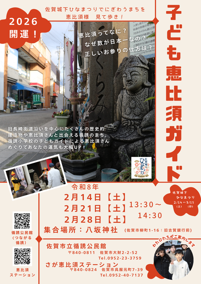 子どもガイドによる恵比須さんめぐりで、あなたの運気も大幅UPさせましょう。