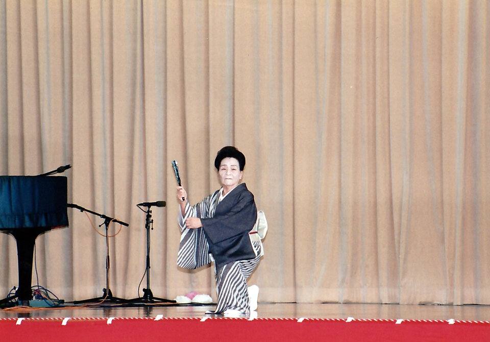 循誘小学校体育館で行われていた「循誘ふるさと祭文化祭」。今日の写真も、華麗な舞い、舞い、舞い!名取りクラスの先生がでしょうか。