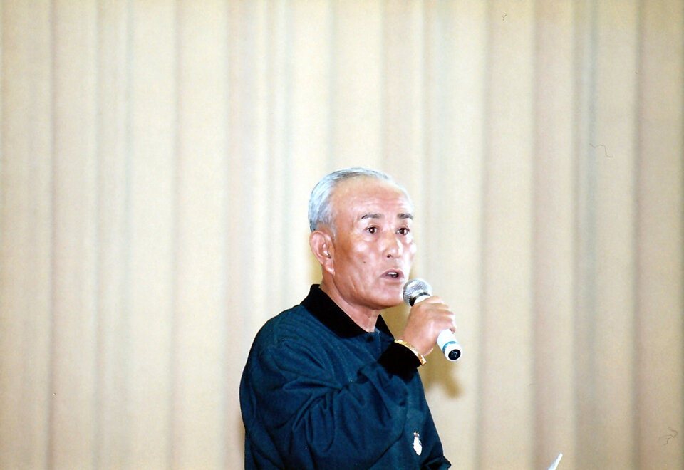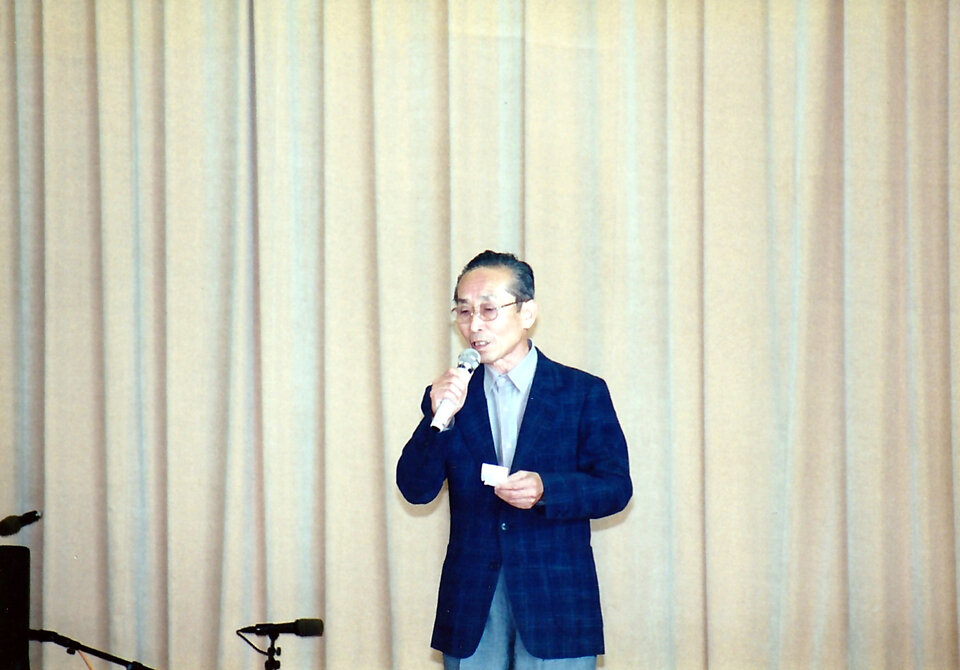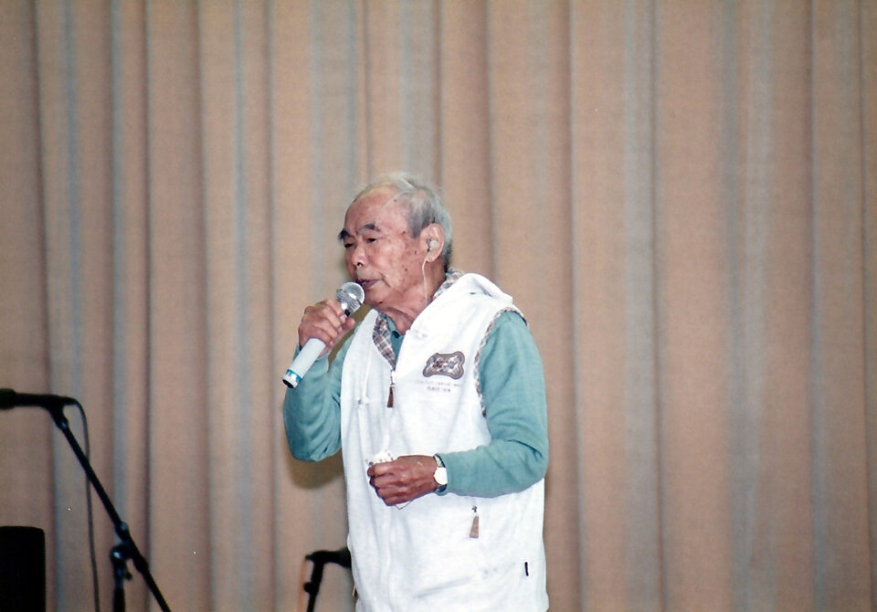 循誘小学校体育館で行われていた「循誘ふるさと祭文化祭」。今日はカラオケで熱唱中の男性の皆さんです。